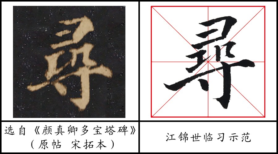 2、《多宝塔碑》在临习“寻”字时要注意,“竖钩”的书写特点是( )。