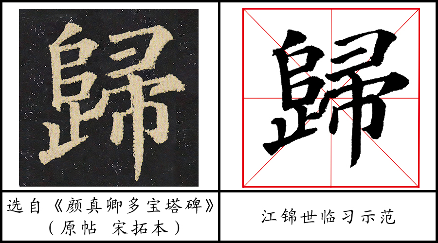 2、《多宝塔碑》在临习“归”字时要注意,“横钩”的书写特点是( )。