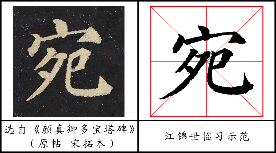 2、《多宝塔碑》在临习“宛”字时要注意,“竖弯钩”的书写特点是( )。