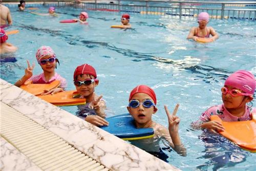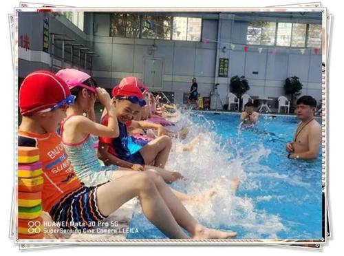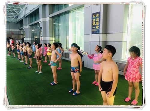 瞧!在班主任和体育老师的带领下,同学们排着整齐的队伍,带着游泳装备,开心地走向游泳馆。下水之前,热身运动可不能少,换好泳衣,带上泳帽,跟着教练的指挥伸伸胳膊扭扭腰,舒舒筋骨动动肩。