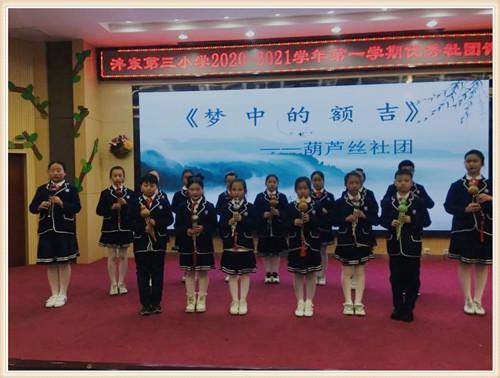 校社团采取全员参与、全面覆盖的形式,根据孩子的兴趣爱好、特长,学生自主选择,满足了学生的个性化需求。学校社团有葫芦丝、装饰画、武术、乒乓球、啦啦操、书法、绘画、剪纸、花样跳绳、足球、篮球等六十多个社团,验收组由校班子领导及社团负责人、社团检查人员组成。经过一学期的精心打造,每个社团都以不同的方式交出了自己满意的答卷。