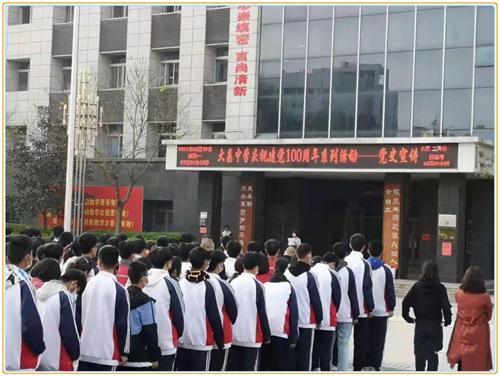 学校“学党史”教育坚持线上线下相结合,利用学校党史长廊、电子显示屏、校园群、微信公众号发布学习文章,宣传党史资料,营造浓厚氛围;每周在课表中排入党史学习课,举办党史教育报告会,邀请各位老师、邀请老战士讲党史;组织学生观看党史教育专题片,以《中国共产党百年瞬间》、《党史故事100讲》等搭建“党史微课堂”进行播放。