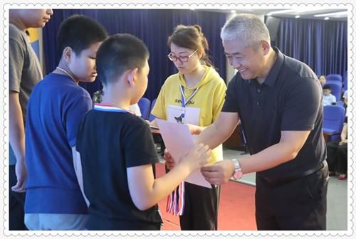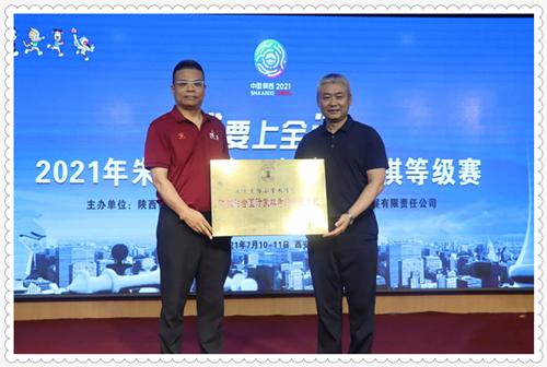 一直以来,大学南路小学朱雀分校不断探索和研究国际象棋这门课程的育人功能,率先将国际象棋运动纳入学校特色项目,开设校本课程,并成立了国际象棋社团。比赛结束后,陕西省国际象棋协会主席梁浪发为大学南路小学朱雀分校授牌,由王健校长接牌。