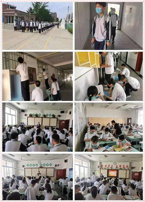 8月22日下午2时,九年级各班级开始错峰入校报到,同学们在校门口间隔1米排起了整齐的队伍,有序通过体温检测通道,进入校园。