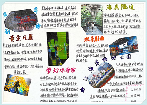 同学们对外面的世界有着无比的新鲜感,他们在自己的小导游词中还融入了自己的所思所想,用趣味、童真的语言向我们介绍了自己喜欢的景点。除了静态的导游卡,学生还进行“小小导游”的视频录制,以讲解员的姿态向大家解说各处景点。学习内容开放化,学习形式多元化,既锻炼了学生的表达能力,又为他们提供了一个展示自己的平台,更达到了从知识到能力的学以致用和综合实践的最终目的。