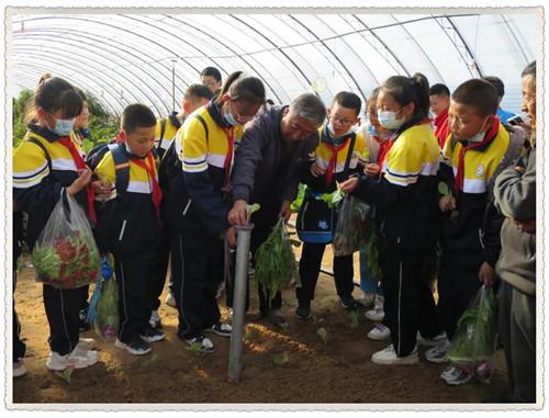 在活动中,盐场堡小学老师带领孩子们认识了一些蔬菜如:油麦菜、辣椒、茄子、西红柿、萝卜等。细致全面地讲解了蔬菜种植的条件以及浇水、施肥、防虫等相关种植知识。同时带领学生来到劳动实践基地亲身体验采摘和喂养活动。