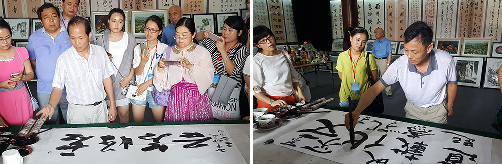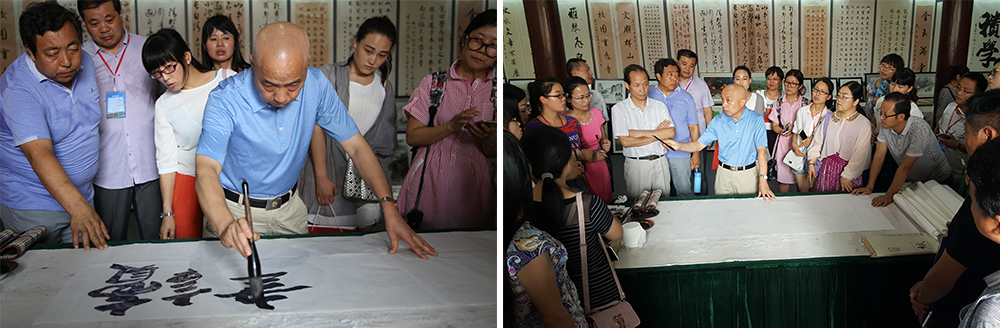陕西学前师范学院书法研究所所长杨立言、秘书长方明给学员们讲解辅导。
