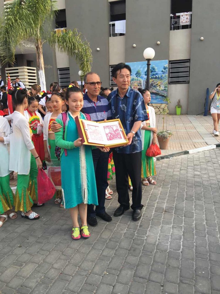 陕西省少年儿童代表团向邀请方摩洛哥布尔格莱格协会会长赠送纪念品