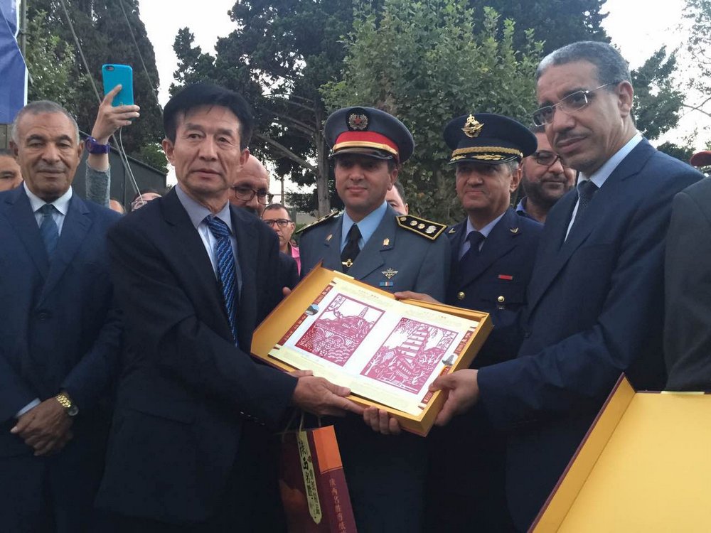 陕西省少年儿童代表团向摩洛哥肯尼特拉市市长赠送纪念品