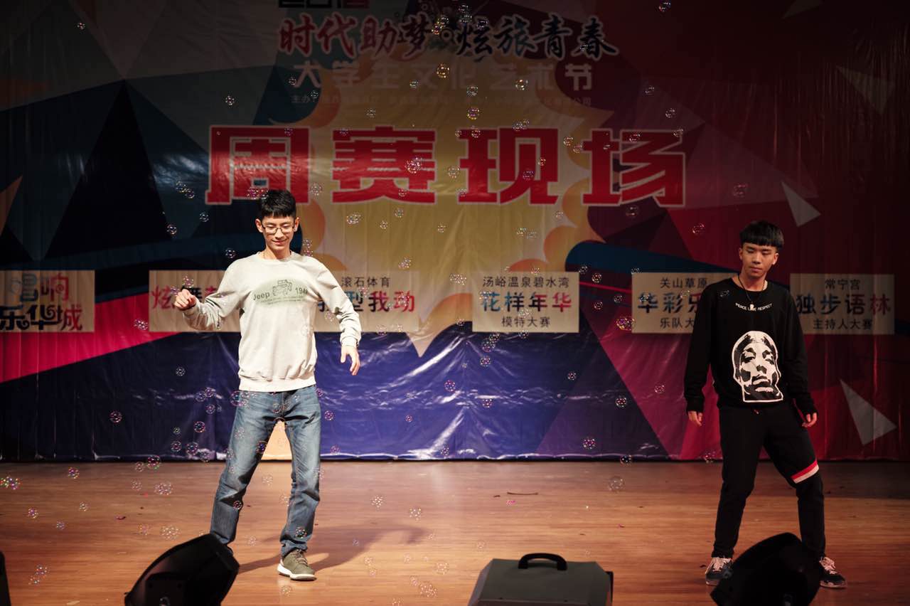 “时代助梦,炫旅青春”大学生文化艺术节于2016年的金秋10月9日,在西安电子科技大学大活小剧场举办了校园周赛。担任本次赛事的的评委老师有程小莉老师、李荣帅老师、王豪老师、王人杰老师。