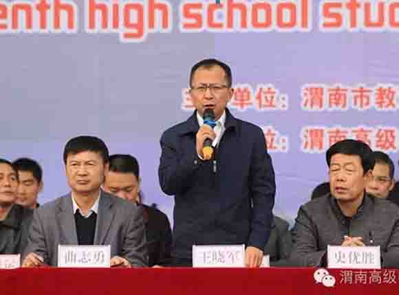 黄栾嘉木宜人眼,渭高处处花锦然。初冬的暖阳照耀着渭南高级中学,一扫初冬的阴冷,到处生机勃勃。11月2日上午9点,在学校体育场,由渭南市教育局、渭南市体育局主办、渭南高级中学承办的第十一届中学生篮球运动会精彩开幕。市体育局党组书记、局长张晓民主持,市教育局党组书记、局长党福奎致开幕词,渭南高级中学校长姜小卫致欢迎词。