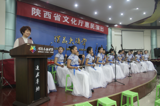 据了解,此次渭南高级中学有幸请到“陕西省文化厅惠民演出音乐会专场”各位艺术家的精彩表演,目的就是为了让民族艺术进校园,让民族文化进校园。让全校师生通过视觉和听觉感受,对民族文化和民族艺术有更加深刻和全新的认识,让大家关注民族音乐、民族的文化,并为它的传承和发展起到积极的推动作用。