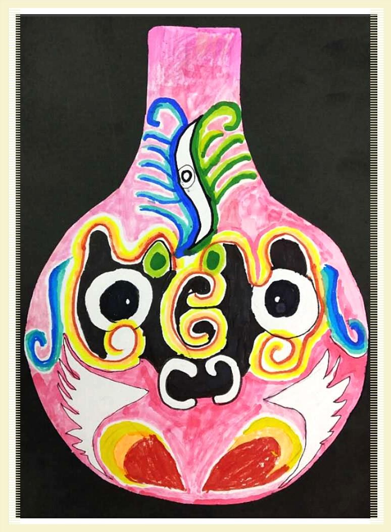 水彩笔画《马勺脸谱》