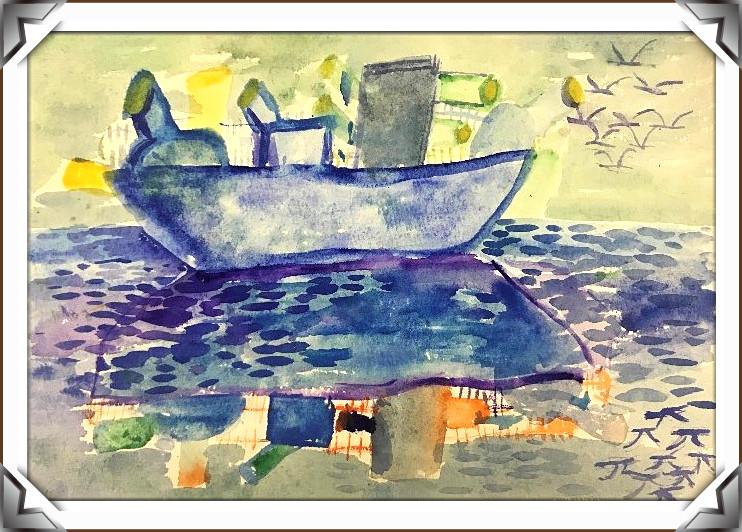 > 绘画 > 水彩画《海中的倒影》