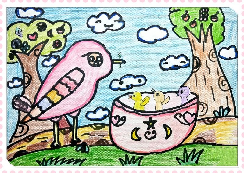 > 绘画 > 油画棒画《鸟妈妈喂食》