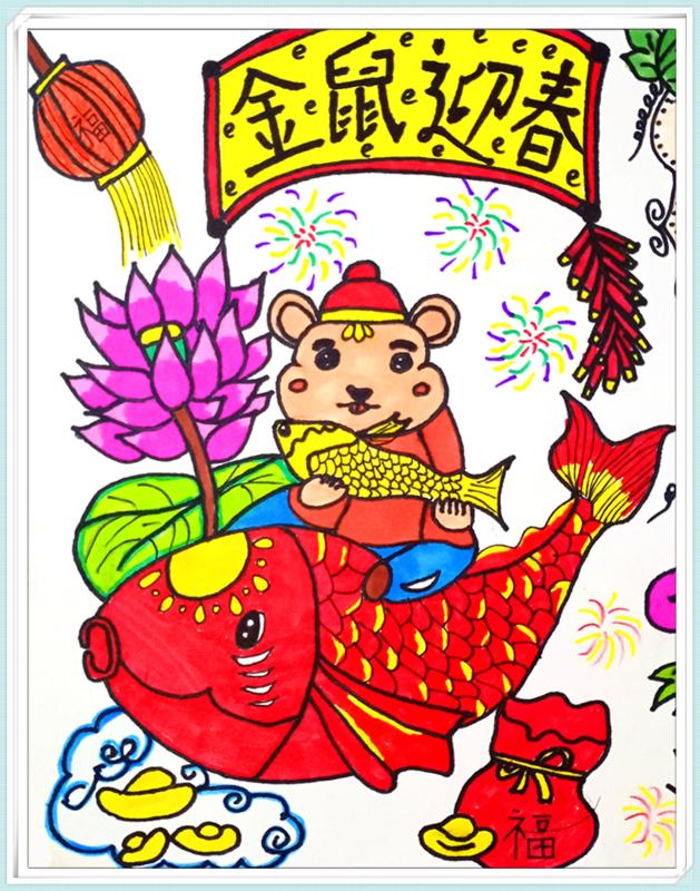 > 绘画 > 马克笔画《金鼠迎春》