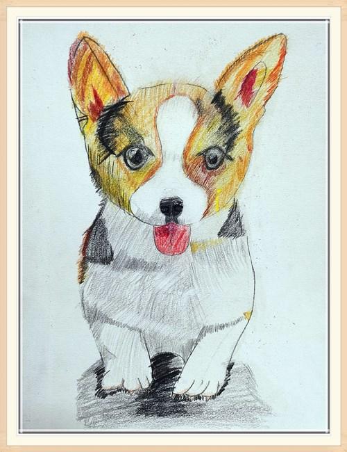 彩铅画《快乐的狗狗》