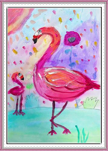 > 绘画 > 《火烈鸟母子》
