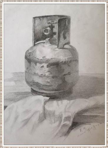 > 绘画 > 素描《斑驳的煤气罐》