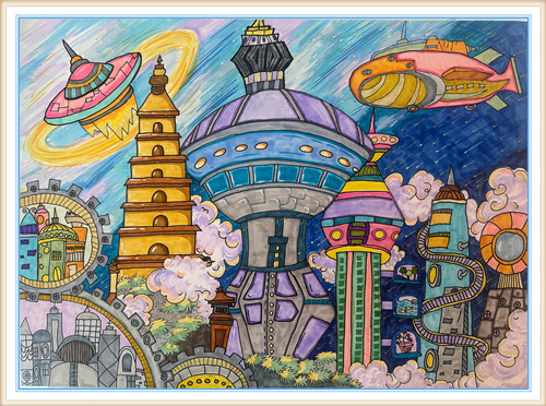 > 绘画 > 《西安未来,科技生活》