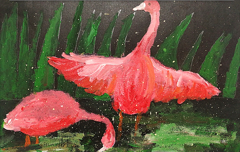 水粉画《火烈鸟》