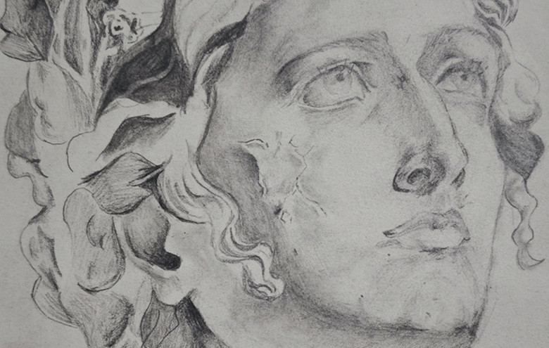 绘画《素描-佛首》