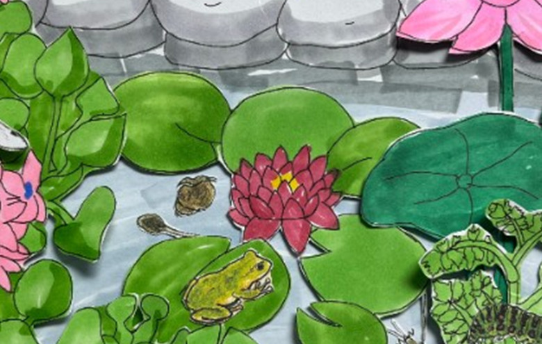 《小池塘四季之夏季拼贴画》