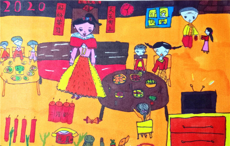 水彩笔画《新年快乐》
