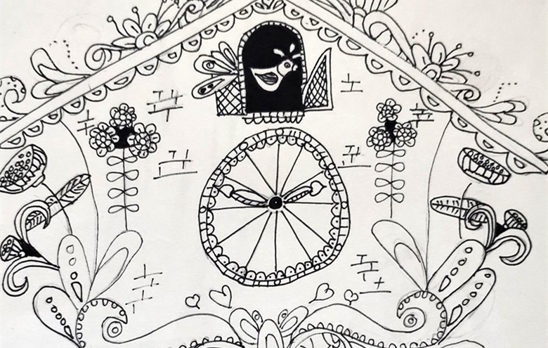 《线描挂钟》