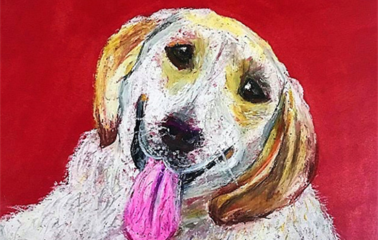油画《吐舌头的小狗》
