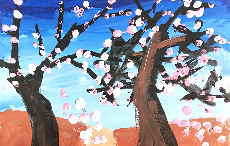 水粉画《浪漫樱花》