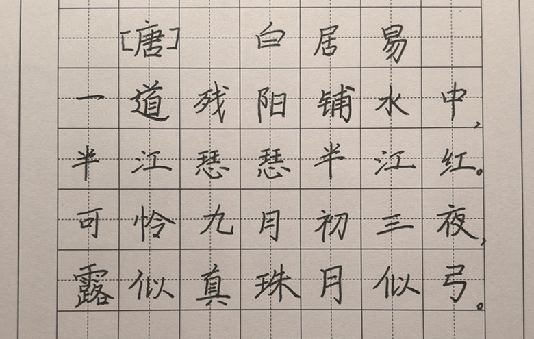 硬笔书法《暮江吟》