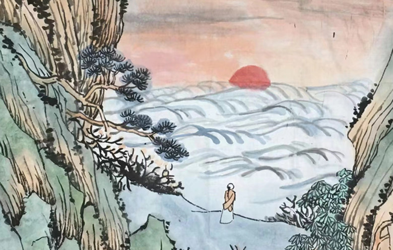 《海波观日》